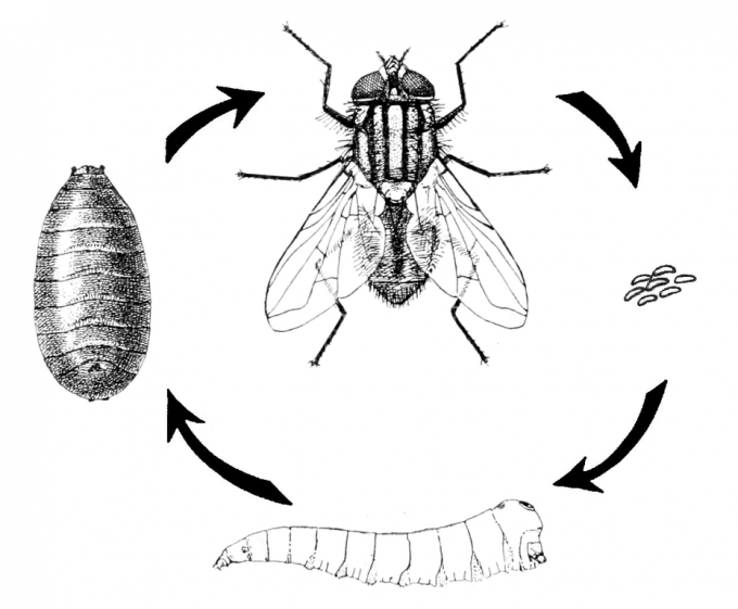 Todo el ciclo de vida de la mosca transcurre en unos 10 días.