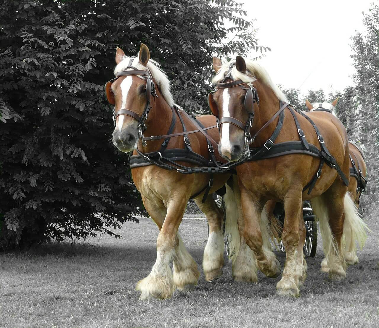 El caballo es un perisodáctilo. El que aquí vemos es un caballo de tiro. Los caballos de silla pueden ser pura-sangres o media-sangres. El caballo es uno de los animales domesticados desde hace más tiempo. Se trata de una «noble bestia» y se habla de su boca, manos y pies y no de su morro o sus patas.