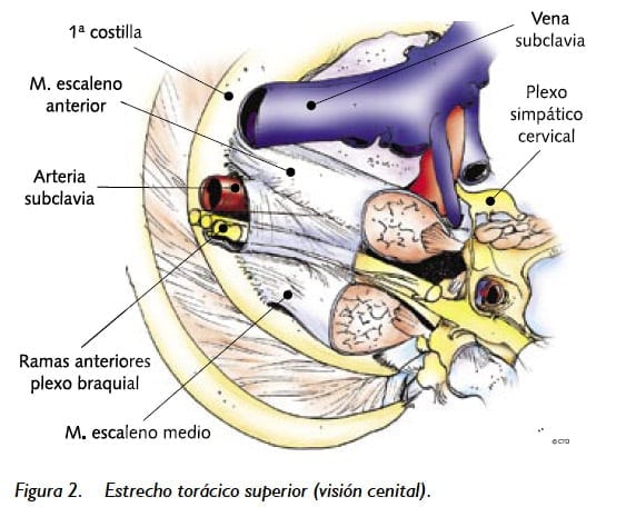 • La vena subclavia se encuentra por delante del músculo escaleno anterior y no forma parte del triángulo de los escalenos.