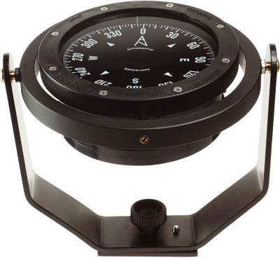 Los compases marinos son brújulas en aguja. Para indicar su dirección adecuada, su esfera, en la que figura una Rosa de los vientos, gira en una caja redonda. Es movido por unos imanes situados en la caja.