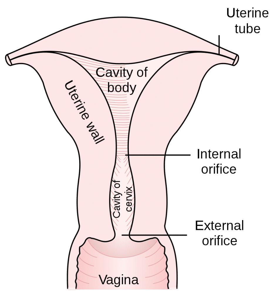 El cuello, que es la parte más estrecha, se prolonga la vagina.