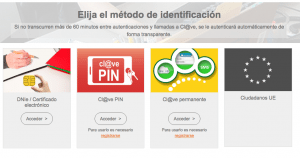 - Accede desde el botón con un certificado electrónico válido ((DNIe/Certificado electrónico, Cl@ve pin, Cl@ve permanente, Ciudadanos UE). En mi caso tengo certificado electronico instalado por lo que me coneta directamente. Si no lo tienes puedes utilizar tu DNI electrónico, o solicitar un acceso por clave PIN.
